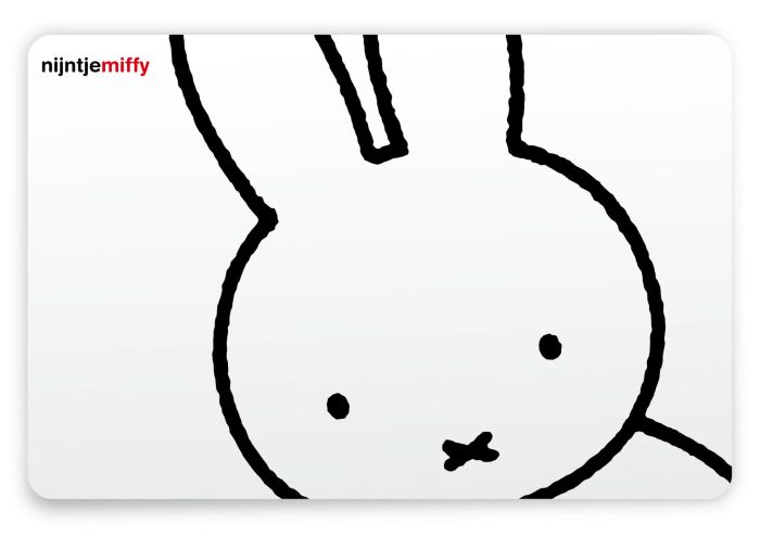 Grote transparante kunststof placemat met een witte snoet van Nijntje met zwarte lijnen op de voorkant.