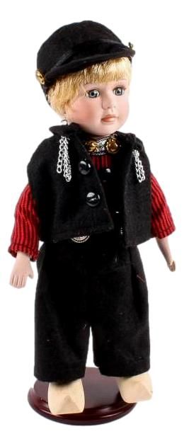 Een prachtige porseleinen pop gekleed in een traditioneel Volendammer kostuum! Deze pop in heren kostuum is 26 cm lang en vervaardigd met veel aandacht voor detail.