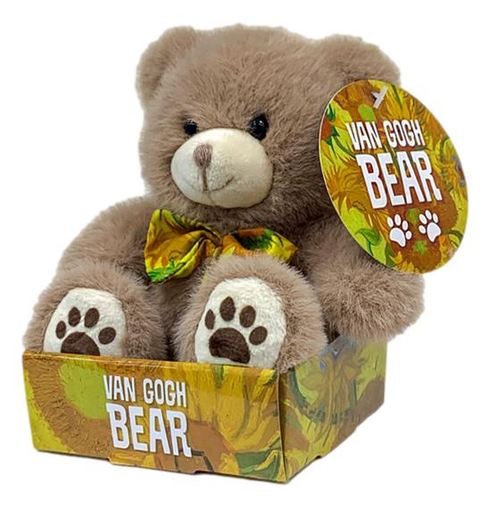 Deze schattige van Gogh Zonnebloemen beer komt in een kartonnen doosje. De knuffel is (zittend) 12 cm hoog en 8 cm breed.