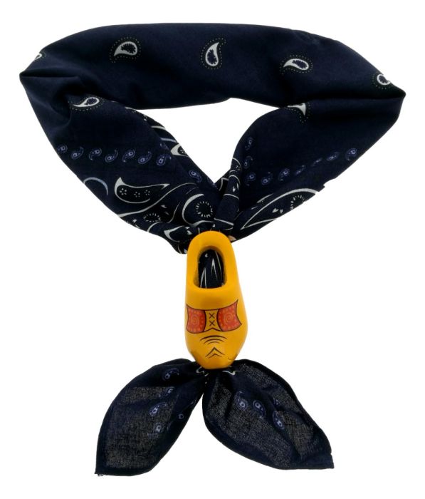 Deze blauwe boerensjaal met een bijpassend dasklompje komt voort uit de oorspronkelijk boerenzakdoek.