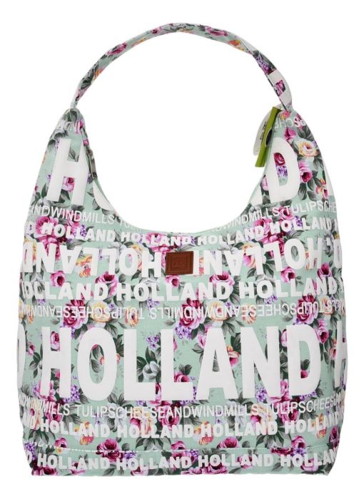 Mooie groene bloemen tas versierd met witte letters "Holland".