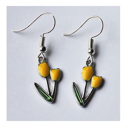 Set oorbellen met tulphangers. De hangers zijn 19mm lang, de verzilverde oorhaken zijn allergie en nikkel vrij.