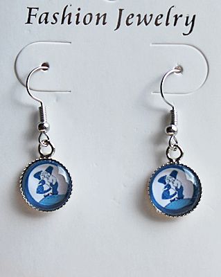 Set oorbellen met 12mm rond hangertje met plaatje van het beroemde delftsblauwe kussende paartje. De oorhaken zijn allergie en nikkel vrij.