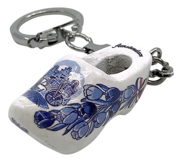 Sleutelhanger Grachtenhuisjes 1 Delfts Blauwe houten klompje