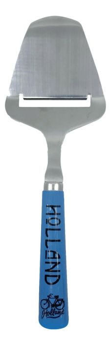 Stevige blauwe keramieken kaasschaaf versierd met de tekst "Holland" in een mooi kartonnen doosje.