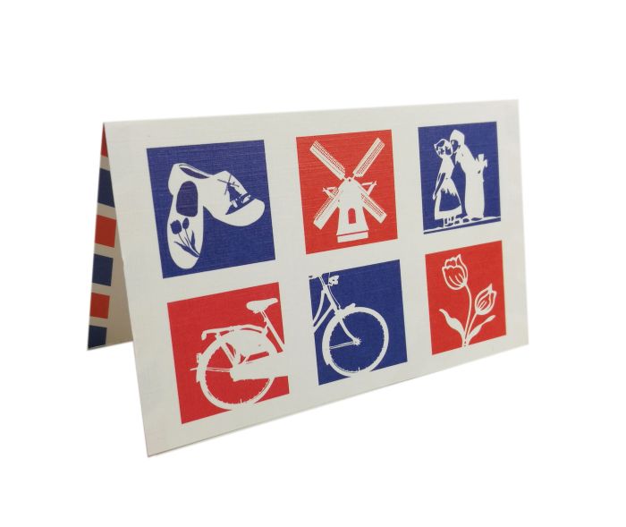 Leuk, klein kartonnen cadeaukaartje met een Hollands thema. De binnenkant van het kaartje is blank. Het kaartje is 5,5 cm bij 9 cm (opgevouwen).