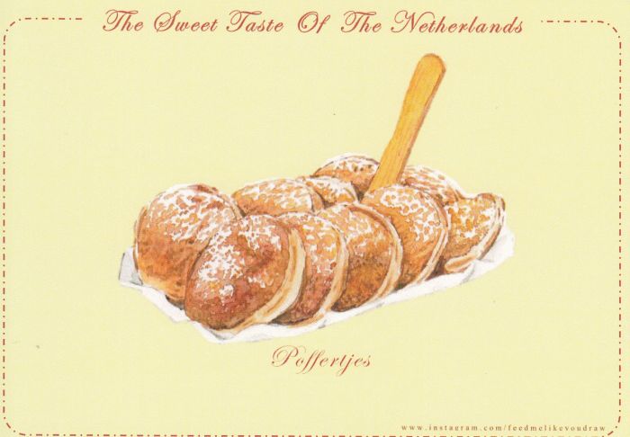 Lekkere poffertjes! Deze stevige postkaart uit de serie "Sweet Taste of The Netherlands" laat deze typisch Nederlandse lekkernij er extra lekker uitzien.