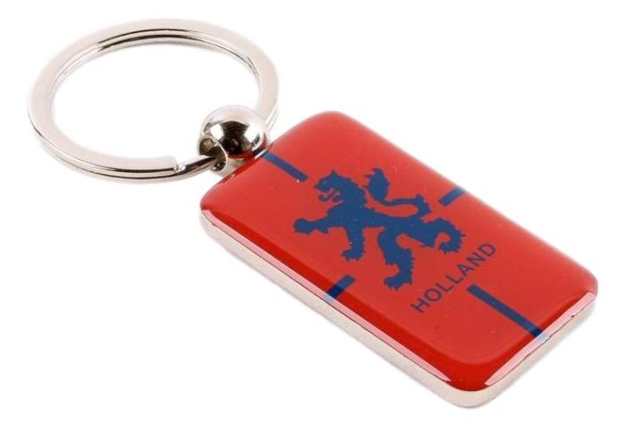 De Nederlandse Leeuw Sleutelhanger is een metalen sleutelhanger met een lengte van 5 cm. De sleutelhanger is voorzien van een rode achtergrond met daarop de afbeelding van de Nederlandse leeuw en de tekst "Holland". De versiering is gemaakt van metaal en is bevestigd aan een stevige sleutelring.