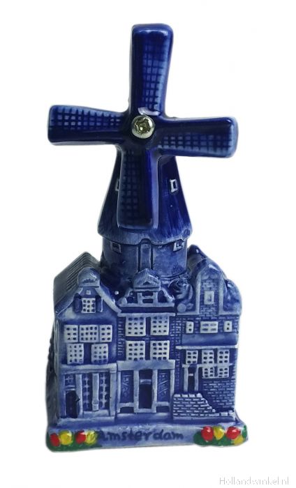 Molen boven grachtenhuisjes. Totaal 10cm hoog.