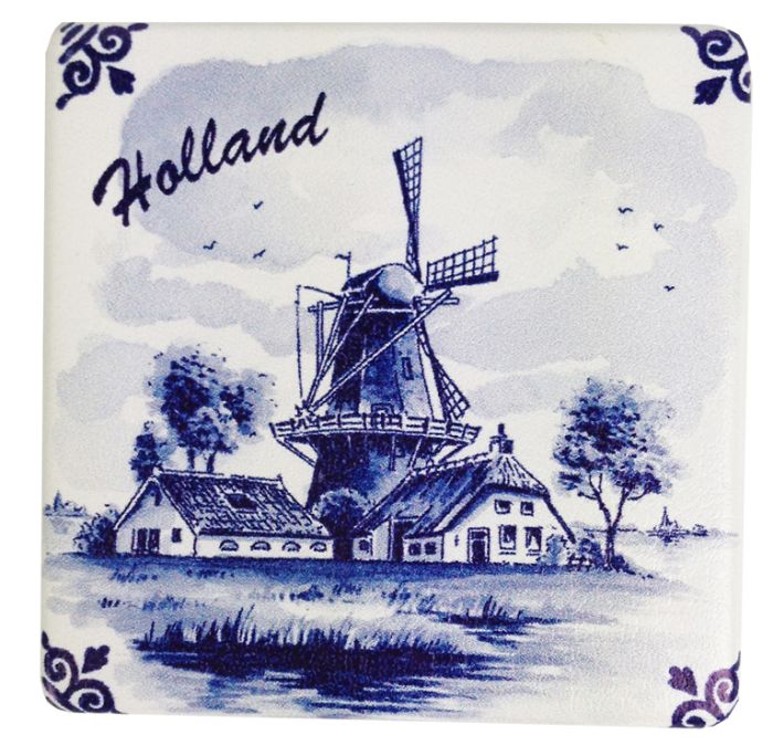 Mooi en stevig uitgevoerd spiegeldoosje met een molenafbeelding aan de voor- en achterzijde. Afmeting is 6x6cm.