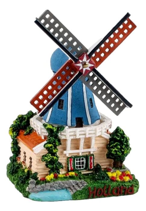 De molen is gemaakt van polystone, een kunststeen die het mogelijk maakt om veel details toe te passen. De wieken van de molen kunnen bewegen.
