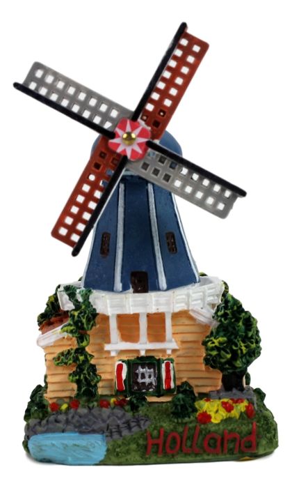 De molen is 9 cm hoog, en de voet is 6 cm bij 5 cm breed.