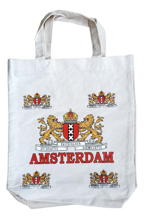 De tas is aan beide zijdes bedrukt met het wapen van de stad Amsterdam.