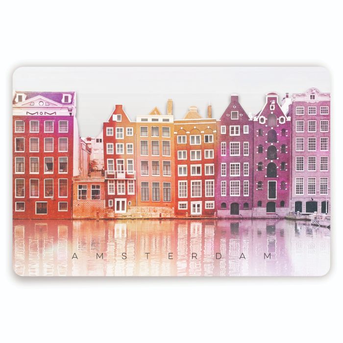 Dek de tafel met deze vrolijke placemat. Hierop is een kleurrijke foto van Amsterdamse grachtenpanden geprint.