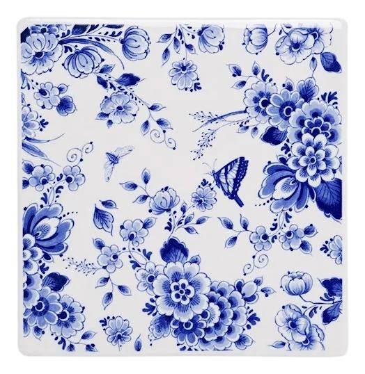 Een Delfts blauwe tegel met daarop een weelderige bloementuin vol met zoemende en fladderende beestjes. Deze tegel is een leuk decoratiestuk om neer te zetten in huis of om op te hangen aan de muur. De bloesem op het tegeltje laat de kenmerkende schilderstijl van Delfts blauwe meesterschilders zien.