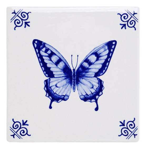 Deze prachtige Delfts blauwe tegel met een vlinder is een unieke toevoeging aan elk interieur. De vlinder is geschilderd in heldere blauwe en witte kleuren. De tegel is 13 cm bij 13 cm groot en is gemaakt van hoogwaardig keramiek.