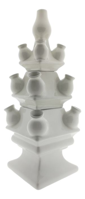 Wilt u een kamer versieren? Dan is deze vaas een heel geschikt decorstuk. De vaas bestaat uit 3 keramische delen die op elkaar gezet worden. Een onderkant, middenstuk en bovenkant. De vaas is 40 cm hoog en weegt ongeveer 2000 gram. In de periode tussen 1634 en 1637 was er een periode van tulpengekte (tulpenmania) in Holland, de prijzen van de toen nieuwe tulpenbollen groeiden tot astronomische waarde.