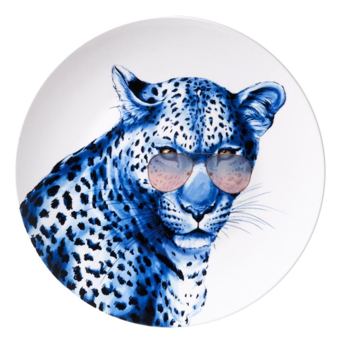 Deze luipaard is helemaal retro, met zijn klassieke zonnebril en doordringende blik waant hij zich in de vorige eeuw. Perfect voor een beetje uitdagende versiering aan de muur, met 31 cm diameter is dit een groot bord.